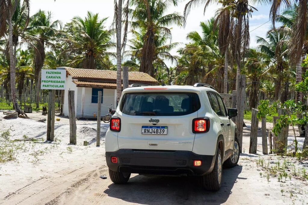 Passando pela porteira, você vai dirigir por uma linda fazenda de coqueiros — vai ter uma única bifurcação e você vai pegar a estradinha da esquerda — até chegar a uma pista de pouso de terra à beira da falésia. Só não deixe de ir a uma das pontas da pista (à direita) que oferecem uma bela vista panorâmica para a praia e o mar.
