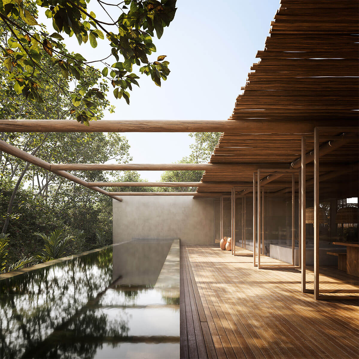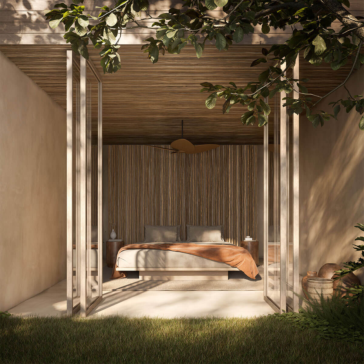 Inspirado na forma litorânea de viver em Trancoso – uma joia intacta da costa brasileira – o renomado arquiteto Guilherme Torrês apresenta uma arquitetura e design de interiores contemporâneos, em diálogo com a simplicidade sofisticada da vida local. As vilas foram projetadas para serem uma extensão do ambiente externo, envoltas pelo paisagismo de Alex Hanazaki, criando uma atmosfera privativa e enigmática.