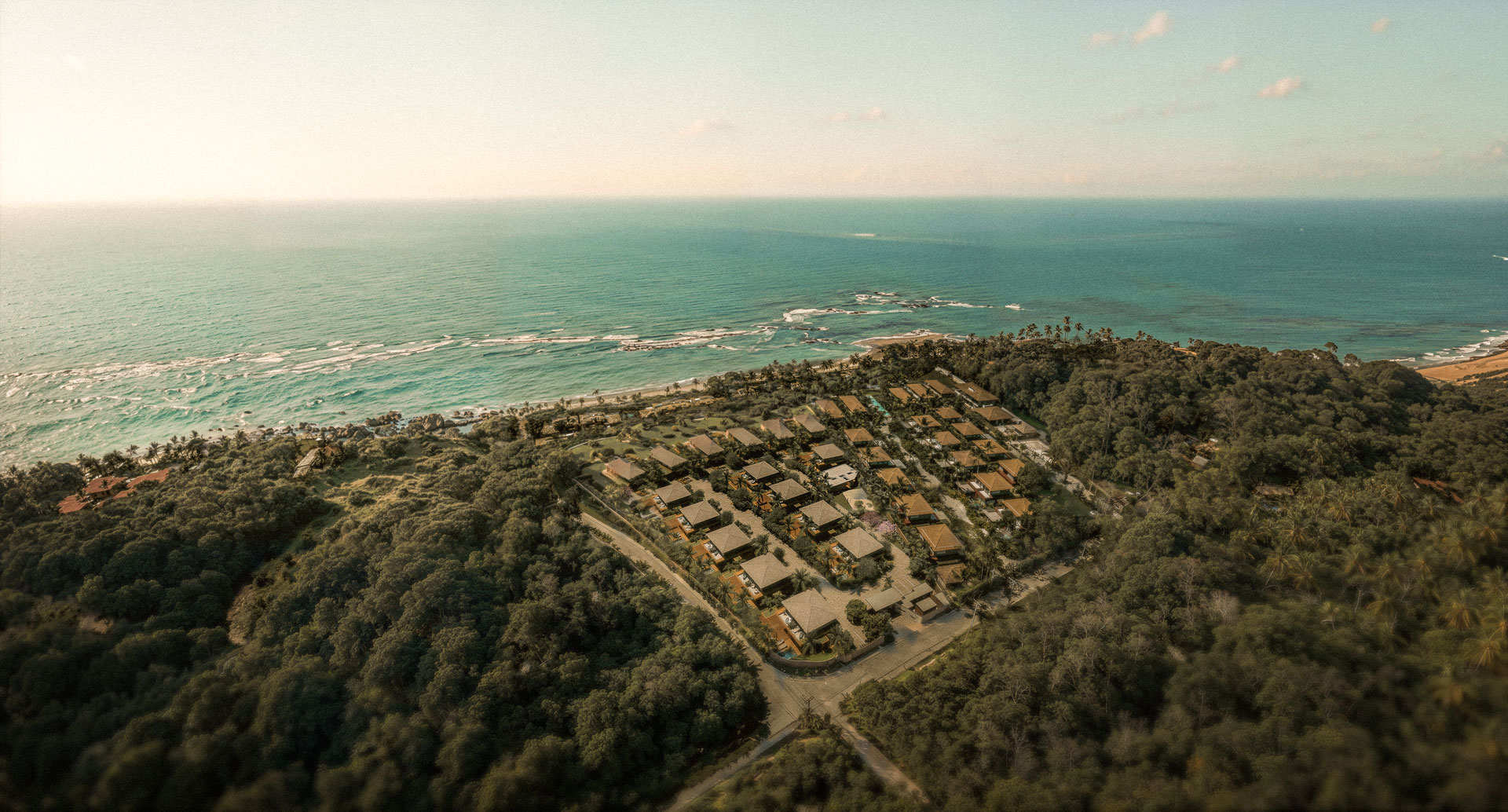 A arquitetura contemporânea, enriquecida com elementos regionais, enaltece o conceito de pertencimento – o sentimento de se integrar ao sul da Bahia. São vilas espaçosas, com grandes aberturas emolduradas por esquadrias, enquanto as pérgolas atenuam a intensidade do sol e do vento.